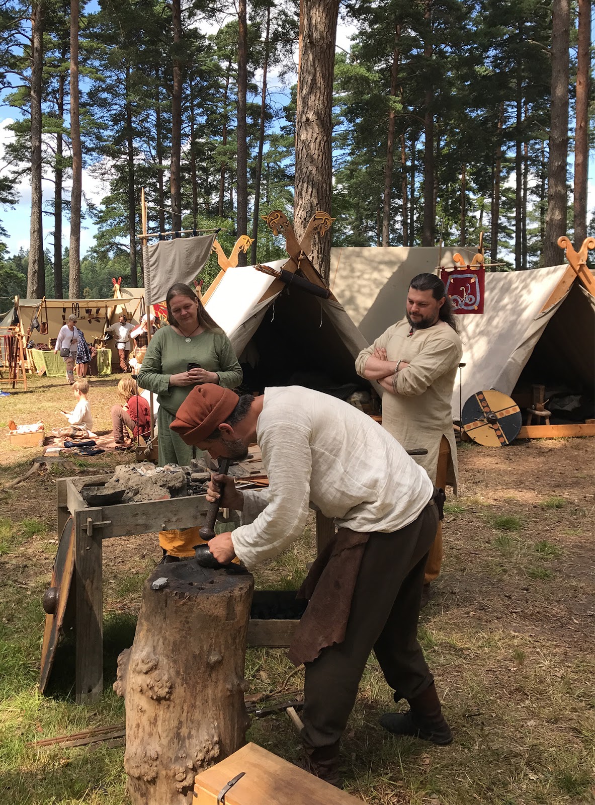 En applikasjon av flere aktiviteter. Hele leiren var full av folk som drev med nålbining, farving av garn, veving på opstadvev, driving av kobber, smelting av jern, støping, smiing, spikking, treskjæring, lafting, matlaging, urtetørking, preging av skinn osv