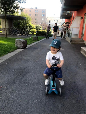 I wonna ride my bike!!! Det er det yngste barnebarnet mitt som trener seg på sparkesykkel og synes det er kjempegøy.