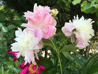 Haven likner snart Den hemmelige haven, forsømt og overgrodd som den er blitt! Jeg trodde jeg aldri kom til å være så travel som pensjonist, men tida strekker absolutt ikke til verken have eller blogg. Rosene ved kjøkkenterrassen har klart seg godt i vinter ... og blomstrer vakkert og dufter himmelsk nå. Peonene ved inngangen har blomstret enormt. Det har derimot ikke dem i bedet. Rosene på Eiriks plass ved dammen har frosset i midtvinterskulda og trenger en sesong på å komme til hektene igjen. Dessuten har rådyrene vært her og forsynt seg av nye skudd. Jeg har forresten starta å ta bort gresset der for å slippe å klippe. I fjor sommer var det bare brunsvidd, noe det er sjanse for at det vil bli denne sommeren også. Måtte ta en pause i dette arbeidet på grunn av alt regnet den siste tida .... før sol og varme slipper til igjen!